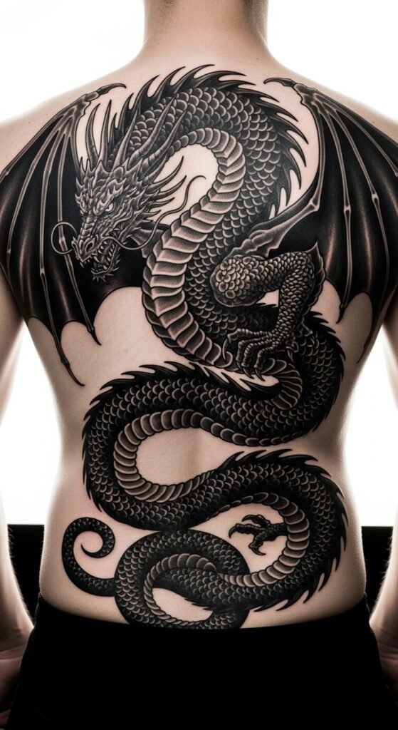 For those who prefer a more subtle yet equally striking design, a black and white Japanese dragon tattoo is a great choice. The absence of color allows the tattoo’s shading and line work to take center stage, creating a sophisticated, timeless look. It’s perfect for someone who wants a traditional design with a minimalist twist.